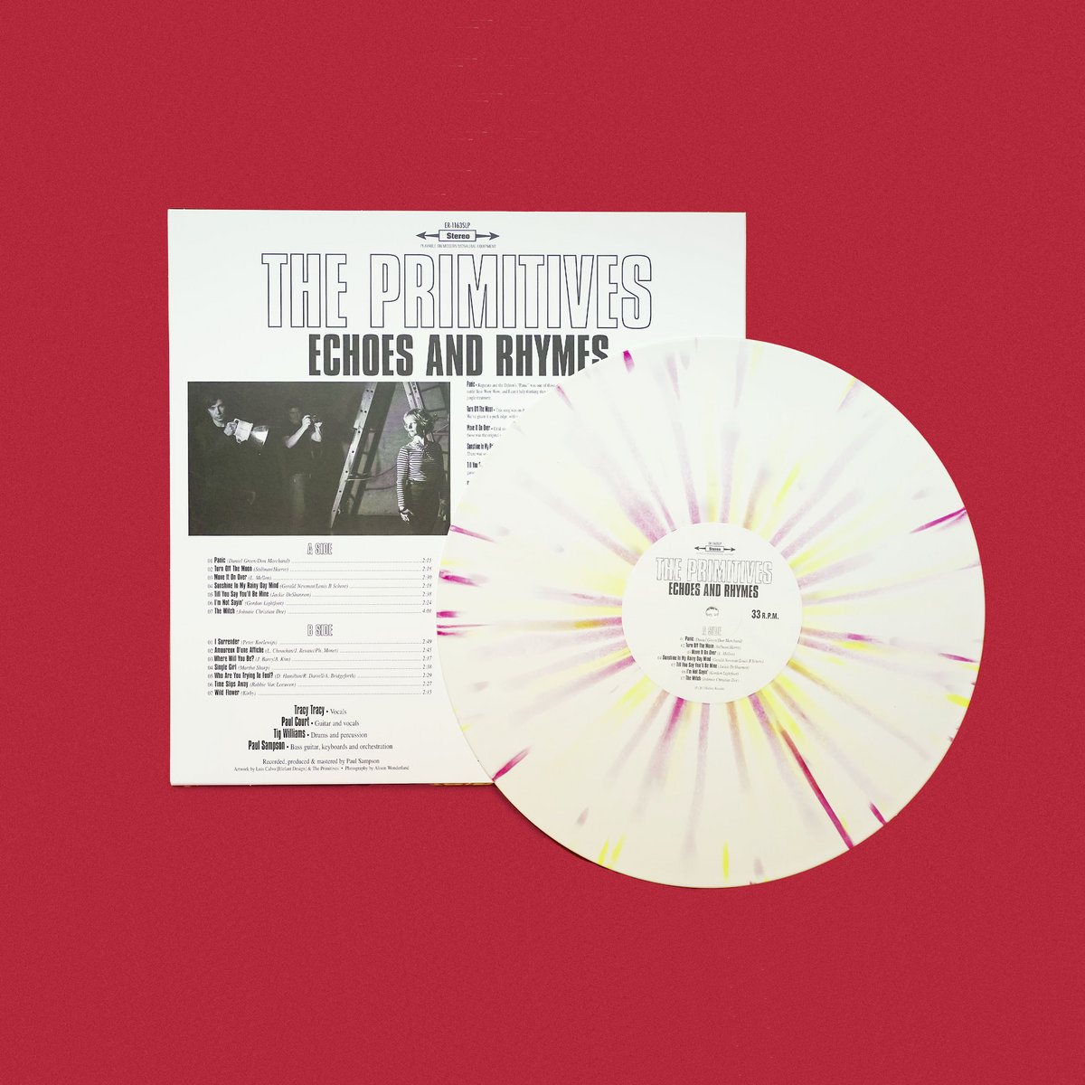 Con motivo del 40 aniversario de la banda, reeditamos en vinilo de color blanco con splatter rojo y amarillo "Echoes And Rhymes", una brillante colección de versiones de canciones compuestas por bandas femeninas de los años 60, gemas que THE PRIMITIVES hicieron suyas con una chispa jangle-pop, energía punk y la inconfundible voz de Tracy Tracy.